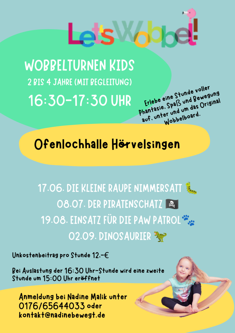 Hier findet ihr Termine für meine Wobbelturnen®KIDS Einzelstunden. Einfach als Schnuppermöglichkeit, just for fun und für jeden was dabei.